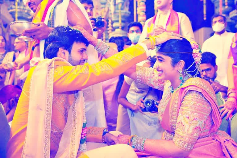 Hyderabad: Ramoj Group Chairman Ramoji Rao’s granddaughter Brihathi’s got married to Venkat Akshay, son of Dandamudi Amar Mohandas and Anitha at 12:18 am on Sunday in Ramoji Film City. Brihathi is the younger daughter of Kiron Cherukuri and Sailaja. Apart from family members, Vice President Venkaiah Naidu, CJI NV Ramana, TDP chief Chandrababu Naidu, KCR, Nara Lokesh, Kishan Reddy, Chiranjeevi, Mohan Babu, Rajinikanth, Pawan Kalyan, MLC Kavitha, Jupalli Rameshwar Rao, PV Sindhu and other celebrities have graced the occasion and blessed the newlyweds.