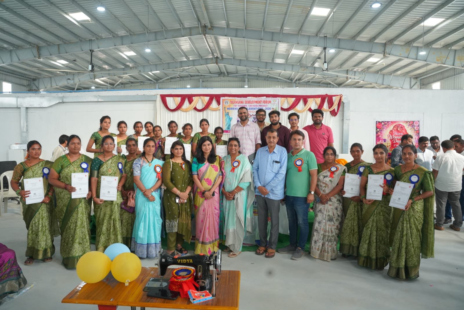 Sircilla District Congress In-charge K.K. Mahender Reddy, DRDA Project Director Geetha, Apparel Park AD Santosh, TDF India President Matta Rajeshwar Reddy, TDF Vanitha Cheyutha President T. Vani, TDF General Secretary Vinil, Texsport Regional HR Sagar, Local HR Madhukar, Samarth Trainer Sunitha, along with officials from various government departments and a large number of women, participated in the program.